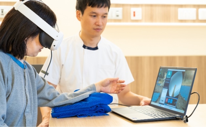 コンピュータ技術とロボット工学を応用した上肢用ロボット型運動訓練装置を利用して、患者さんの生活での手のつかいやすさを支援しています。