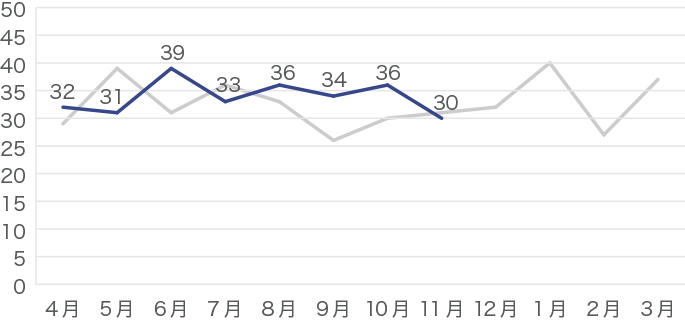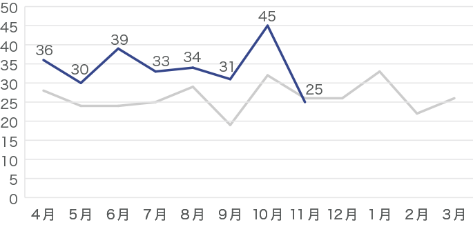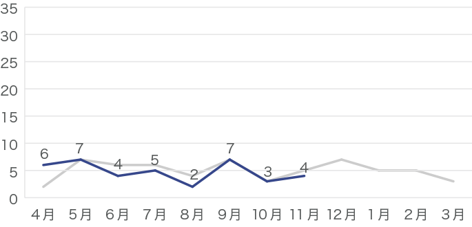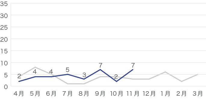 昨年のデータはグレーの線で示しています。
